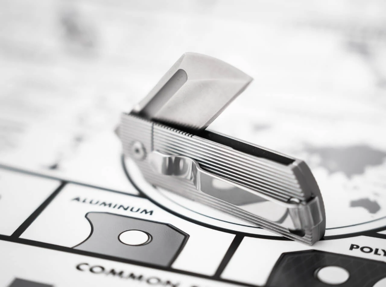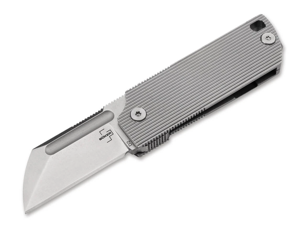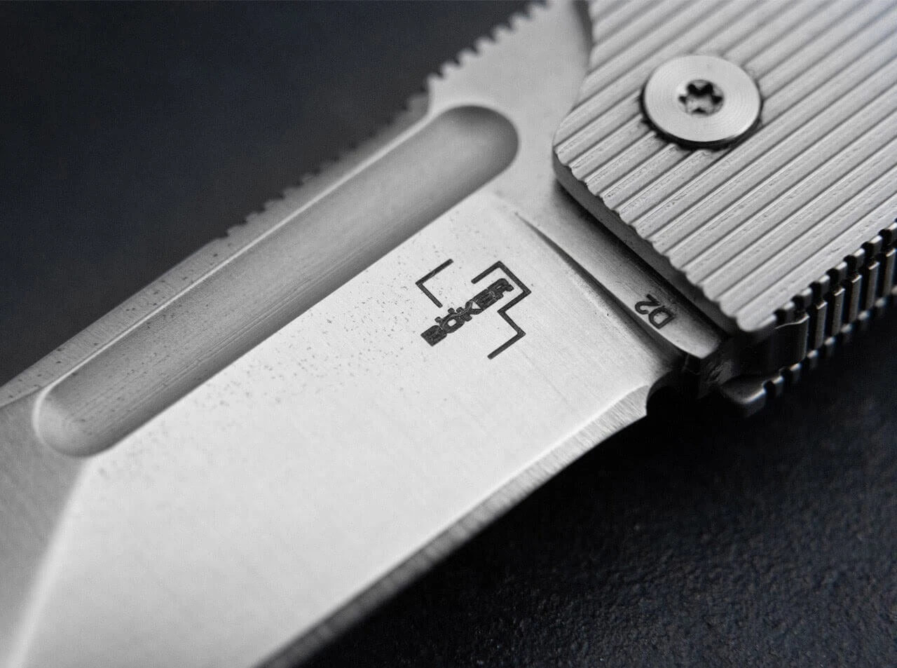 Markant, konsequent und zeitlos: das Böker Plus BabyX trägt die unverkennbare DNA von Darriel Caston als kompaktes EDC Messer im industriellen Wellblech-Look. Fernab üblicher Konventionen versieht der Designer das Taschenmesser mit eindrucksvollen Details, die unweigerlich für erhöhten Herzschlag bei zahllosen Messerfreunden sorgen. Die kugelgelagerte Sheepfoot-Klinge mit Satin Finish besteht aus dem besonders schnitthaltigen D2 Stahl und kann per Flipper geöffnet werden. Jimpings an Klingenrücken sowie Frontflipper erleichtern die Bedienung und sind neben der diskreten Fehlschärfe maßgebliche Designelemente, die im Edelstahlgriff nahtlos fortgeführt werden. Hier sorgen die in Längsrichtung platzierten Riffelungen für ein stimmiges Spannungsgefüge und garantieren sicheren Halt in allen Lagen. Der Frame Lock fügt sich fließend in die Liniensprache ein und komplettiert die gewohnte Böker Plus Performance. Als weiteres Highlight bildet der glänzende Deep-Carry-Clip (Tip-Up/r) einen harmonischen Kontrast zum ansonsten gedeckten Erscheinungsbild des Klappmessers. Praktisch: die Fangriemenöse erlaubt weitere Befestigungsoptionen.