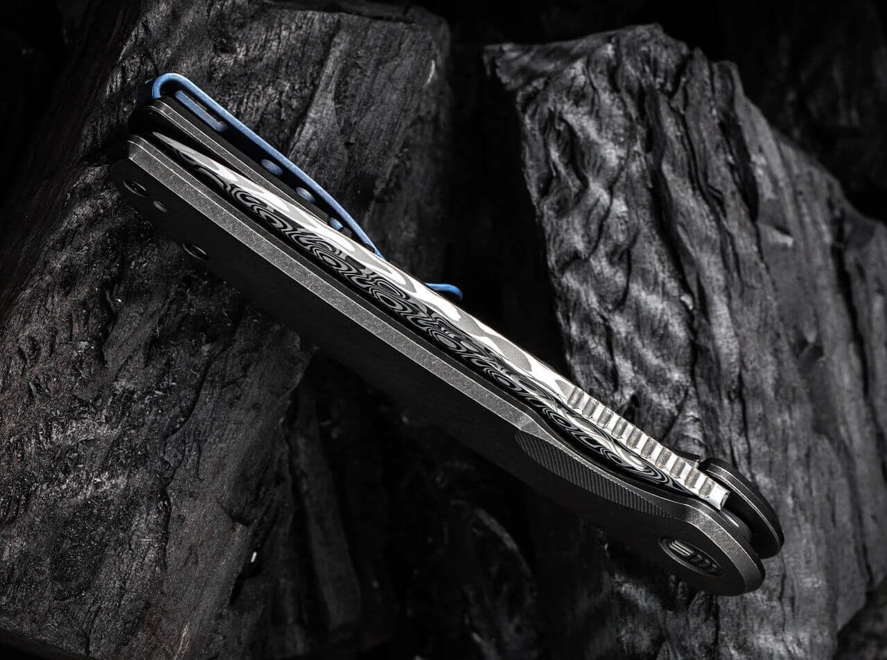 Das funkelnde Licht am Horizont des WE Knife Ozeans ist eindeutig das elegante Beacon. Seine Strahlkraft verdankt es der edlen Damastklinge und dem geradlinigen Titangriff. Nagelhau und Framelock geben dem Messer auch bei rauem Seegang der täglichen Schneidarbeiten eine sichere Orientlierung. Der Clip (Tip-up/r) rundet die Ausstattung perfekt ab und erzeugt garantiert ein Leuchtfeuer in den Augen.