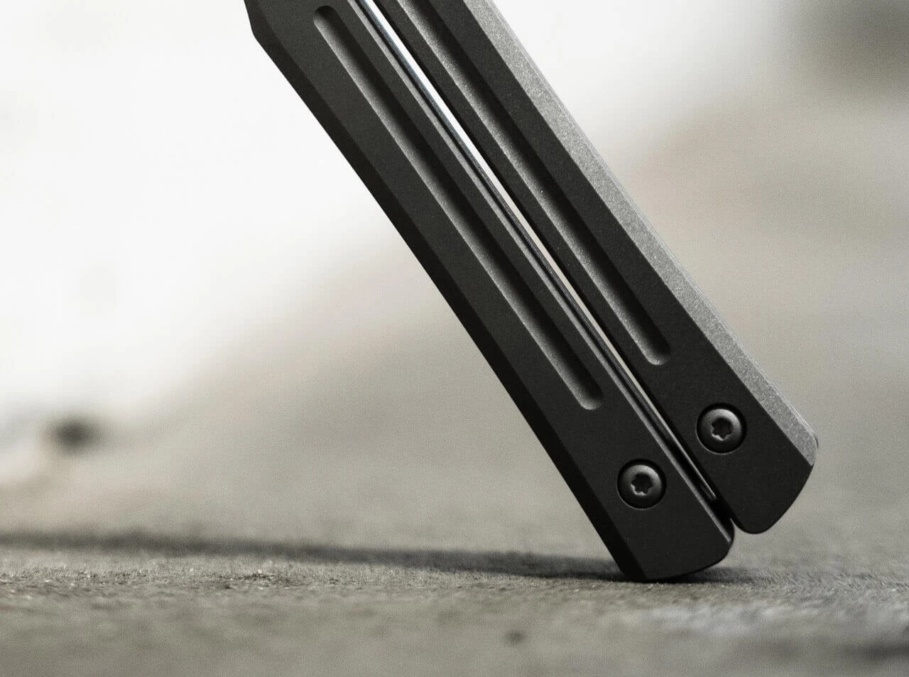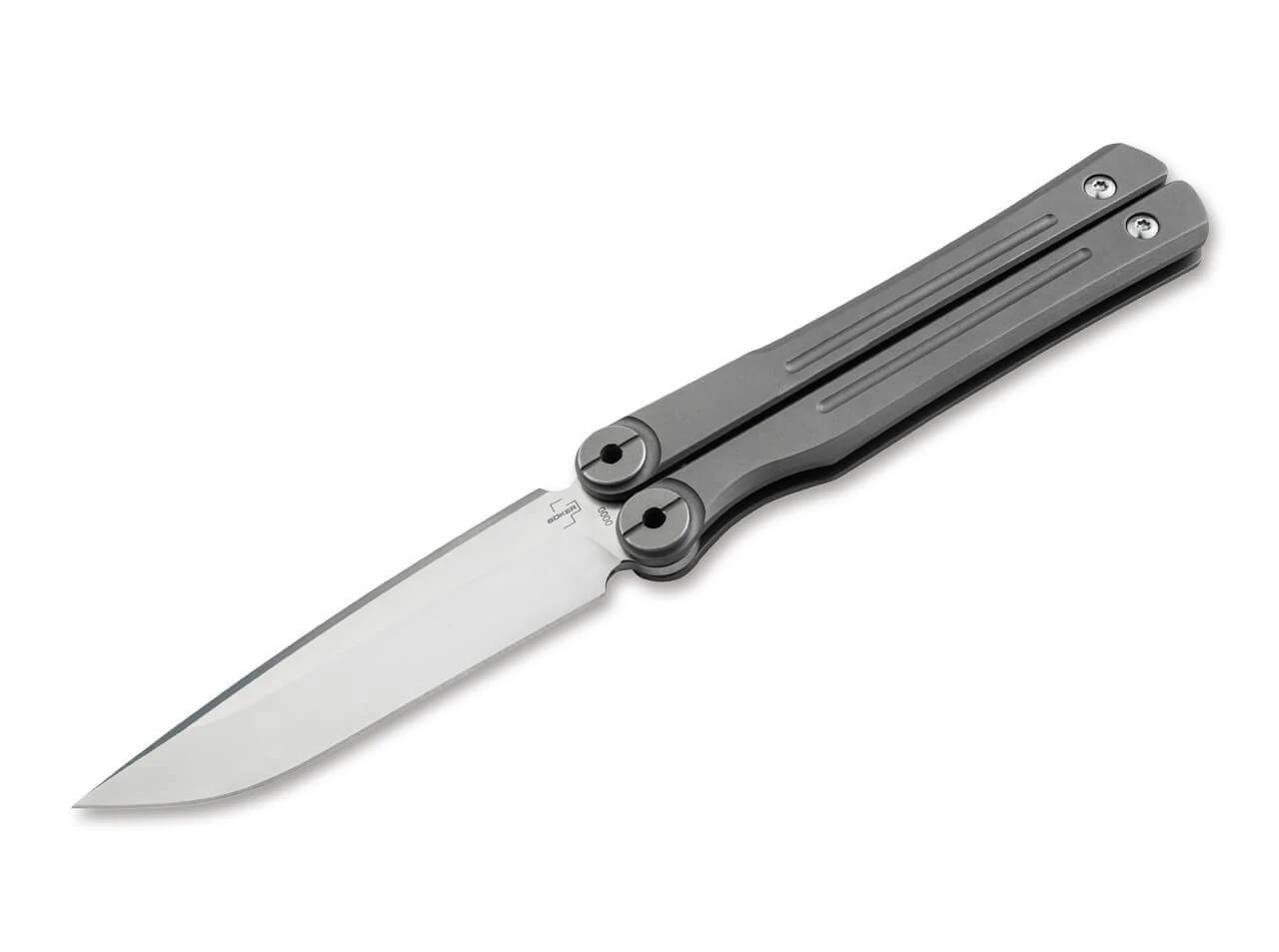 In der Fraktion der Balisong Messer nimmt das Böker Plus Faction von Jakub Wieczorkiewicz eine besondere Rolle ein. Geöffnet präsentiert es sich wie ein elegantes Gentleman Messer, da auf die für diese Messerart üblichen Aussparungen im Griff verzichtet wurde. Stattdessen setzt der Messerdesigner von Poltergeist Works beim Böker Plus Faction auf Masse wie auf Klasse. Ausgewogen bei der Nutzung und schwungvoll beim Öffnen vermittelt der edle Titangriff mit Bead Blast Finish in jeder Lage einen souveränen Eindruck in der Hand. Die Klinge aus pulvermetallurgischem CPM-S-35VN meistert leichtfüßig selbst schwierige Schneidarbeiten und ist mit einer dekorativen Fehlschärfe am Klingenrücken versehen. Der Deep-Carry-Clip (Tip-Up/r) und das hochwertige Filz Etui runden die alltagstaugliche Ausstattung des Butterfly Messers gelungen ab.