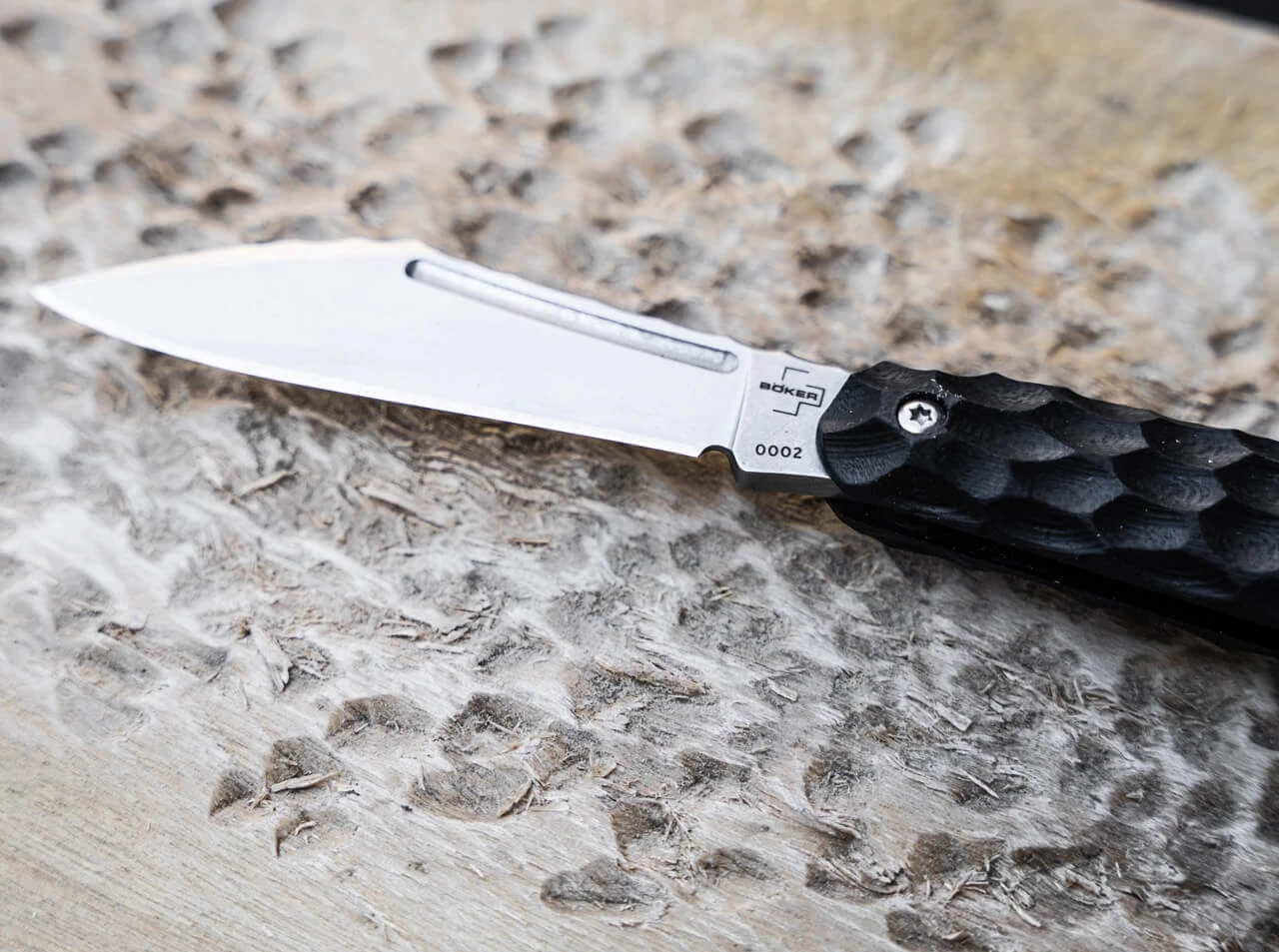 Dem ukrainischen Messermacher Alexander Krava gelingt es in seinen Entwürfen vortrefflich, Form und Funktion auf höchstem Niveau zu vereinen. Angelehnt an Koteyka, einem unter Kennern der Computerszene nicht ganz ernst gemeinter Virus mit einer Katze als Gallionsfigur, entwarf der Designer das gleichnamige Slipjoint-Messer. Dreidimensional gefräste G10 Griffschalen sorgen mit samtpfotiger Tatzen-Struktur bis zum Klingenrücken für unvergleichlichen Halt, während die D2 Klinge mit Stonewash-Finish in Lauerstellung liegt und erst mit einem leisen Schnurren des Nagelhaus auf ihre Beute aus alltäglichen Schneidarbeiten losgelassen wird. Auch ohne Verriegelungsmechanismus wird die Klinge sicher von der straffen Feder gehalten. Ohne Clip und ohne Fangriemenöse, dafür mit viel geheimnisvoller Eleganz.