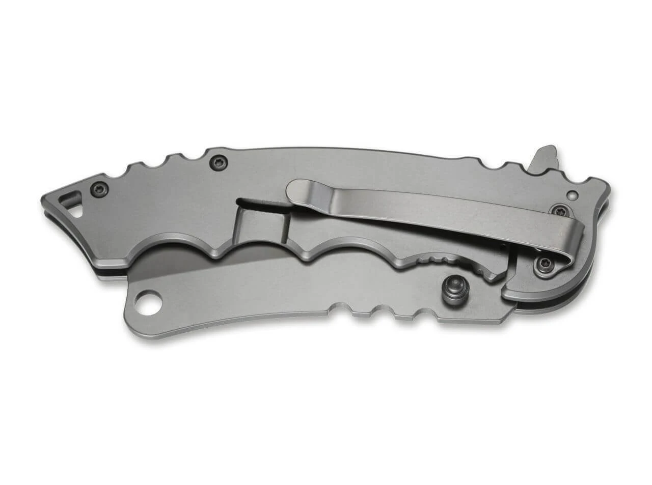 Die außergewöhnliche Klinge des Magnum Mortem wird aus 440A gefertigt und mittels des Flippers oder des beidseitigen Daumenpins geöffnet. Während die hintere Schale den Framelock trägt, ist die Vorderschale des Edelstahlgriffs mit einem stilisiertem Totenkopf versehen. Die ausgeprägten Riffelungen im Bereich der Daumenauflage garantieren zudem kontrolliertes Schneiden. Mit Clip (Tip-Down) und Fangriemenöse.