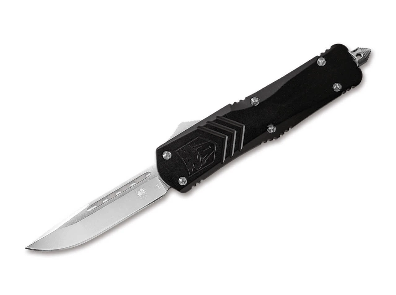 Das handliche CobraTec Medium FS-X ist ein modernes OTF-Messer mit einer satinierten Droppoint-Klinge aus D2. Der stabile Griffkörper wird aus leichtgewichtigem Aluminium gefertigt und liegt angenehm in der Hand. Mit Glasbrecher, Fangriemenöse, umsetzbarem Clip (Tip-down/l-r) und praktischem Gürteletui aus Nylon.
