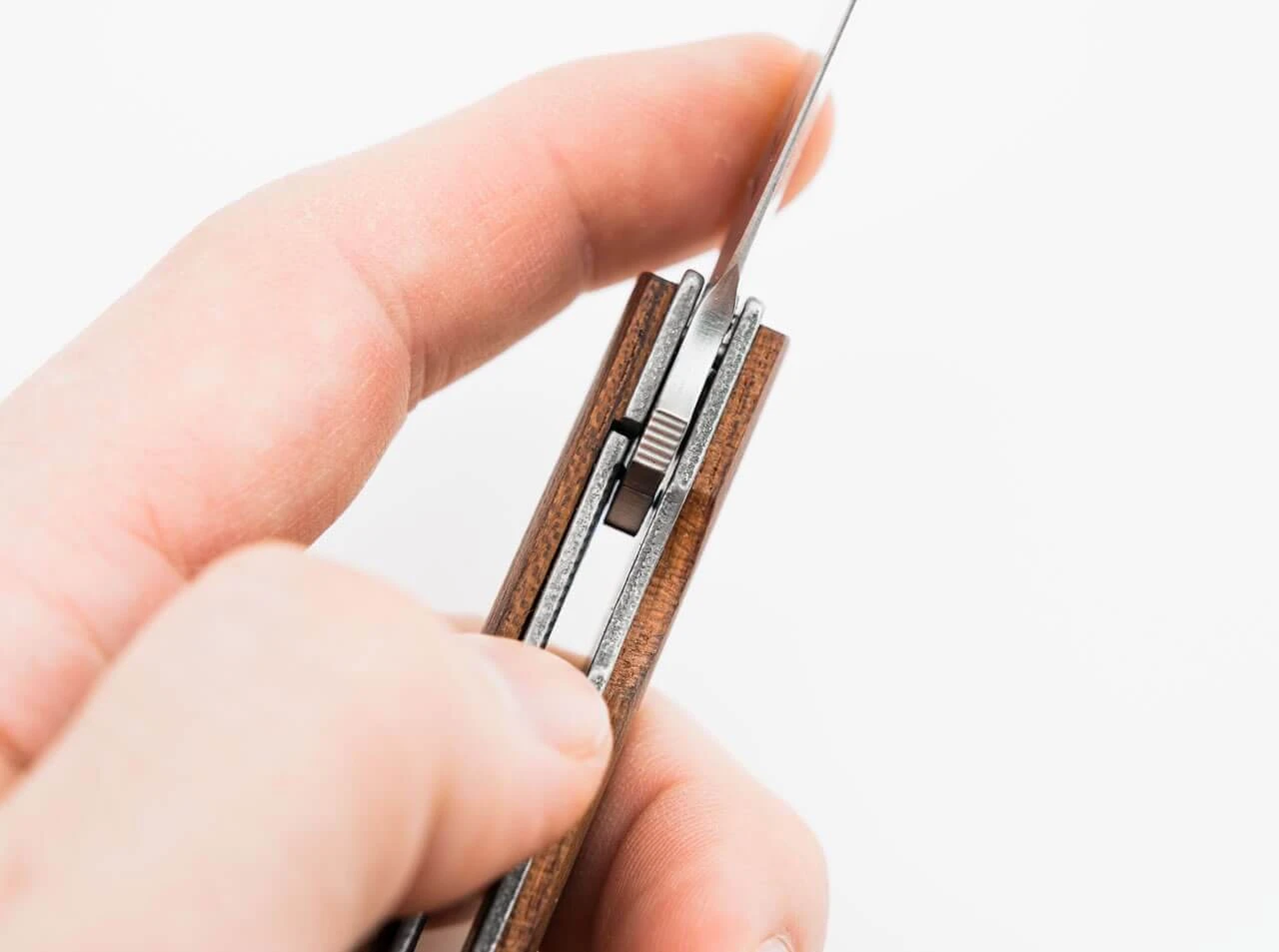 Die extrem flache und sehr schlanke Bauweise machen das Urban Trapper zu einem unvergleichlichen Taschenmesser für den gehobenen Anspruch. Der leichtgewichtige Griff aus Titan ist mit Schalen aus edlem Cocobolo-Holz versehen, die einerseits für ein etwas volleres Griffgefühl sorgen und andererseits einen besonderen optischen Reiz bieten. Das dekorative Edelholz ist hart und schwer und lässt sich im getrockneten Zustand gut verarbeiten. Mit demontierbarem Deep-Carry-Clip (Tip-up/r) aus Titan und hochwertigem Nylon-Etui zur Aufbewahrung.