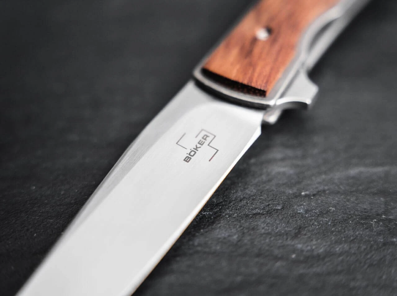 Das überaus schlanke Böker Plus Urban Trapper von Brad Zinker hat sich schnell zu einem der beliebtesten Gentlemanmesser aus unserem Sortiment entwickelt und kombiniert in dieser innovativen Flipjoint-Version die beliebte Flipper-Öffnung mit einem durchdachten Slipjoint-Mechanimus. Die flachgeschliffene Klinge aus VG-10 ist mit einem feinen Hairline-Finish versehen und wird nach dem Öffnen von einem Detent-Ball dezent in Position gehalten. Obwohl die kleine Kugel das unbeabsichtigte Zurückfedern der kugelgelagerten Klinge effektiv verhindert, kann der Widerstand beim händischen Schließen des Messers mühelos überwunden werden. So kann das Messer problemlos in der Öffentlichkeit mitgeführt werden.